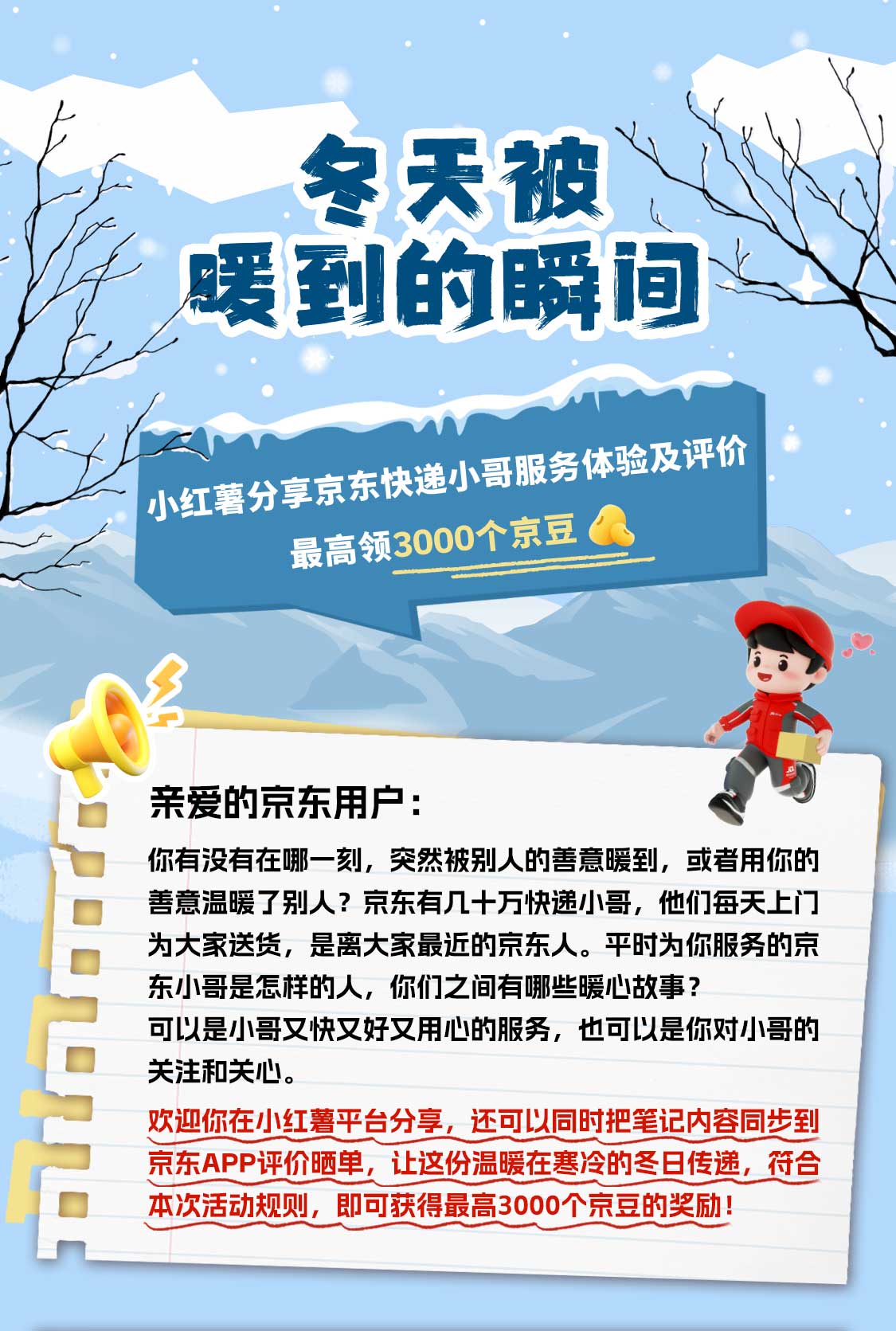 京东小红书发笔记领1500-3000京豆 小伊 11-30 京东小红书发笔记领1000-1500京豆,按照活动要求发笔记即可,如果笔记获得优质笔记还可以额外获得1500个 置顶原因:新一期。 活动时间:2024年11月29日-12月5日 活动地址:https://pro.m.jd.com/mall/active/3EmXjwcheq5rJZSBxTBZohoTA45H/index.html手机扫码参与: 上一篇摸头安慰的表情包_可爱的摸头表情图片下一篇百度地图微信免费领5折打车券 最高可抵10元