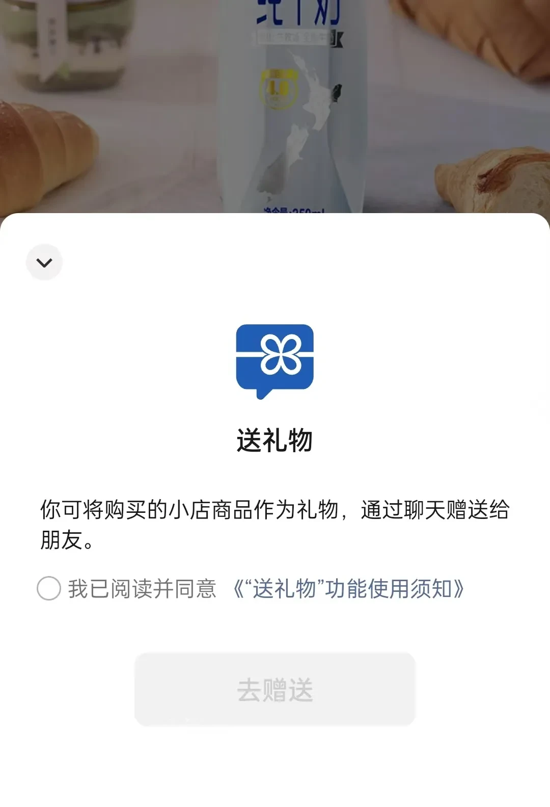 这个功能出现在「微信小店」里(当然用户也可以在订阅号、直播等场景下刷到小店),点开主页,发现微信在商品页面上都增加了「送给朋友」选项: