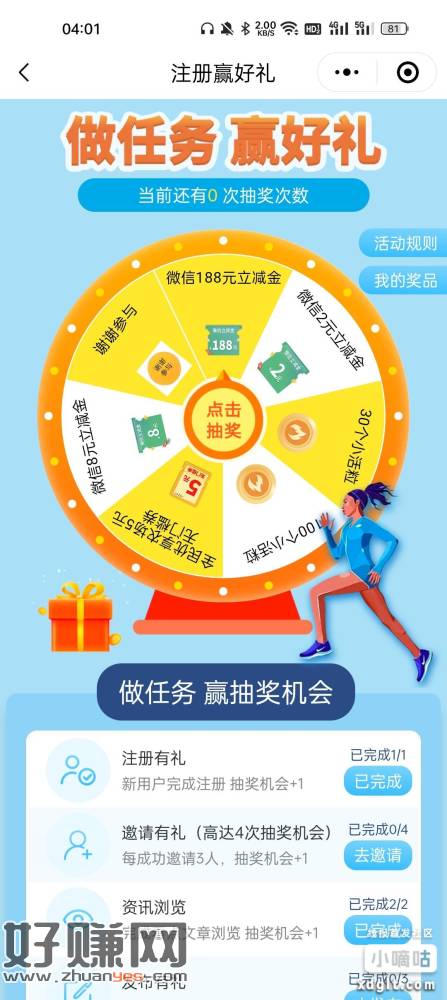 老活动民生运动小程序 活动热门活动 注册赢好礼,浏览2次 小伊 01-02 老活动民生运动小程序 活动热门活动 注册赢好礼,浏览2次各20秒转盘抽奖,自测 上一篇开通有移动双v会员的 去移动云盘搜索“双v会员”领取1G流量下一篇平安app搜“平安銀絎咔更好用”