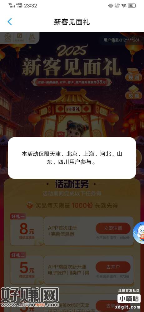 天津银行,我看名额还挺多的,冲就完事了,限制地区参与,我注册 小伊 02-10 天津银行,我看名额还挺多的,冲就完事了,限制地区参与,我注册地址有误,无法参与,兄弟们冲 上一篇拼多多5折券继续领下一篇cxk:工行app搜索银联云闪付-天天抽奖-减8.8