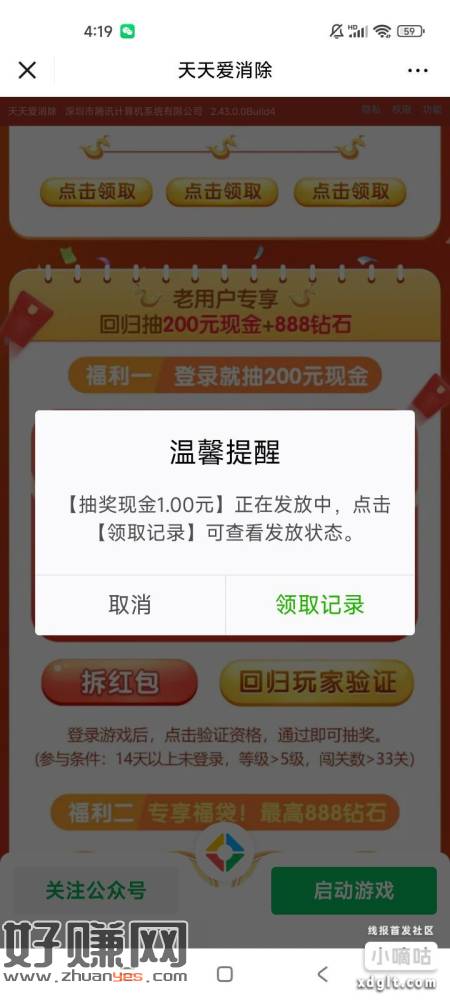 天天爱消除,注册回归都有,回归有闯关数限制登录后验证 小伊 10-09 天天爱消除,注册回归都有,回归有闯关数限制登录后验证https://game.weixin.qq.com/cgi-b ... ¬iceid=144667249 上一篇有反馈5元立减金 没答过可去下一篇[ 交行北分 ]领到10元微信立减金~