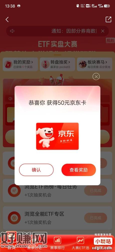同花顺app 登录任意一家证券账户,然后点理财,然后点etf 小伊 11-20 同花顺app 登录任意一家证券账户,然后点理财,然后点etf大赛,然后转盘抽奖,完成任务抽,积分也能兑换次数,不必中,好运上。 上一篇立减-50买飞机✈️火车票下一篇咸鱼薅5个2元包大小号