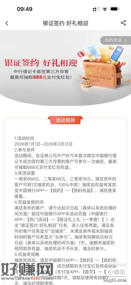 中行银证签约礼更新了,去年玩过中了188,今年18。二类电子 小伊 01-06 中行银证签约礼更新了,去年玩过中了188,今年18。二类电子卡签约存管也可以。 上一篇麦当劳免费领取汉堡/小食 无需任意消费下一篇速度网商银行8.6元毛