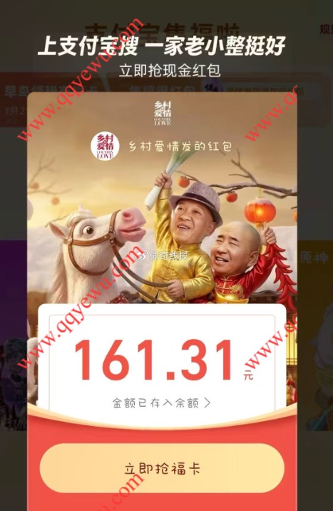 支付宝搜关键字多个领现金红包 亲测161元 小伊 01-27 支付宝搜关键字多个领现金红包,可以中多个红包,都可以去参与下。 提示:如果是封面就不要领 参与方法:打开支付宝APP顶部搜索关键字即可。 关键字:五福临门就玩原神露家军欢喜过大年抢头福是头等大事马年上王者游戏我爱玩第五人格今年打瓦有福了一家老小整挺好惊蛰无声提前纳福小马宝莉集福卡五福东阳光鲜虫草 上一篇支付宝2026集五福 早鸟抢3张稀有福卡下一篇京东福利:维达抽纸好价速领