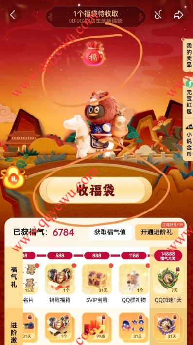 QQ好彩马上来开福袋抽现金红包 音视频VIP等 小伊 02-10 QQ好彩马上来开福袋抽现金红包 音视频VIP等,还有限定皮肤,超级会员卡,QQ币都一大堆新春福利! 活动时间:2026年2月10日-2月18日 参与方法:打开手机QQ顶部图片【元宝现金红包派发中】或下拉参与。 上一篇自营五粮液突发新低 ,①京东 先领补贴券下一篇淘宝抓马瓜分千万元 抽礼盒等