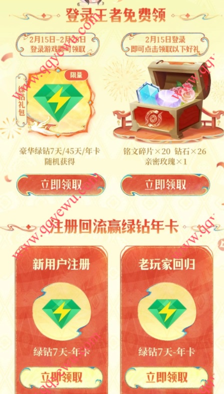 王者荣耀新春登录领7-365天豪华绿钻 小伊 02-21 王者荣耀新春登录领7-365天豪华绿钻,都可以去参与下。 活动地址:https://y.qq.com/forest/pzzW-hu3fjcVGJYb/index.html手机扫码参与: 上一篇一看就舒心的朋友圈图片_唯美治愈意境图片素材下一篇南方基金马力全开接福气抽最高888元现金红包