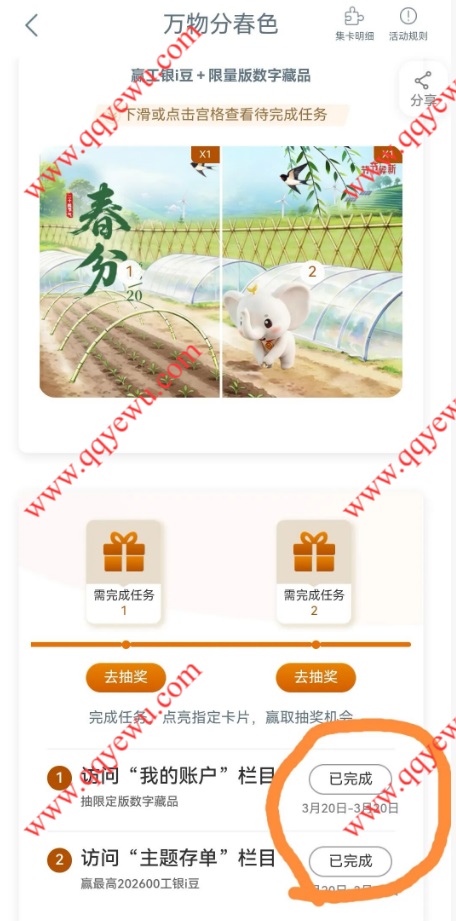 工行万物分春色抽300-20.26万个i豆 小伊 03-20 工行万物分春色抽300-20.26万个i豆,完成浏览任务就可以抽奖,累计i豆可以累计兑换京东卡、天猫超市卡、微信立减金等 参与方法:打开工商银行APP顶部搜索【任务中心】进去享活动里【万物分春色】参与 上一篇工行春分心动播种希望抽0.28-6.66元支付宝红包下一篇跳转京东APP-特价-领5.9-5券