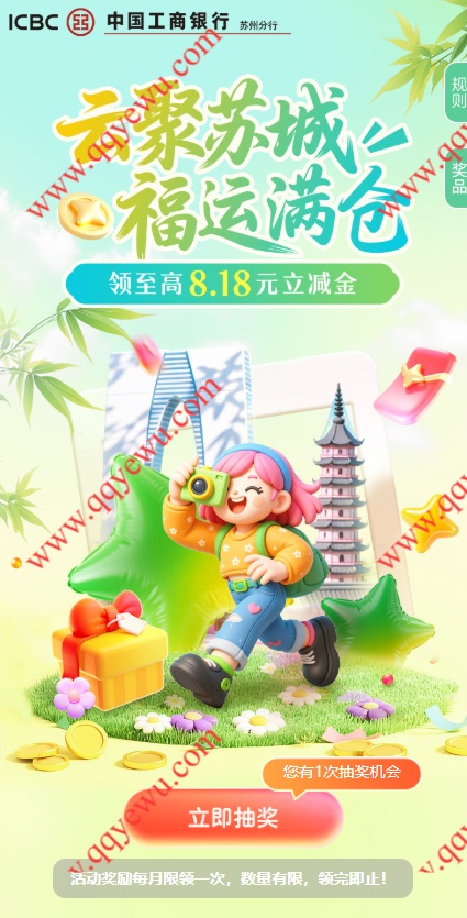 工行云聚苏城福运满仓抽0.18-8.18元支付宝红包 小伊 03-24 工行云聚苏城福运满仓抽0.18-8.18元支付宝红包,抽中到的红包需要手动领取 活动地址:https://a.ytdcloud.com/751990972346273792/751991112062734336/activity/luckydraw-detail/912888285527871489?pageId=page1741940671247手机扫码参与: 上一篇亲测唯品会员50-30元券 37元40包洁柔下一篇交行基会多多每周抽0.1-88元支付宝红包