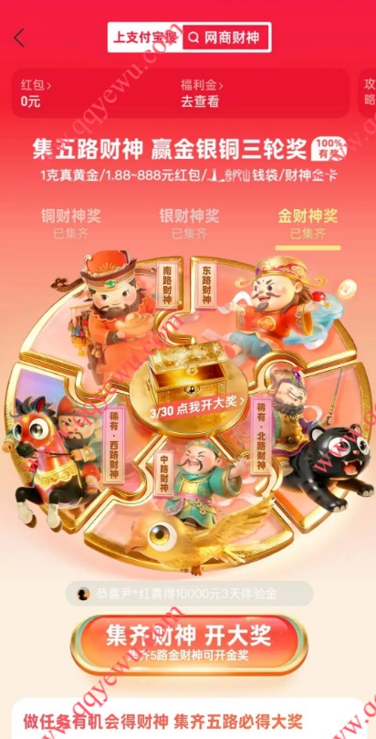 支付宝网商财神必得黄金、大额红包等 小伊 03-30 支付宝网商财神必得黄金、大额红包等,集成后就可以抽奖。 参与方法:打开支付宝APP顶部搜索【网商财神】点图片【集齐网商财神 必有奖】参与 上一篇抖音背景图ins高级质感_背景图简约干净治愈系下一篇左上改泰州,横幅第一个刚中4