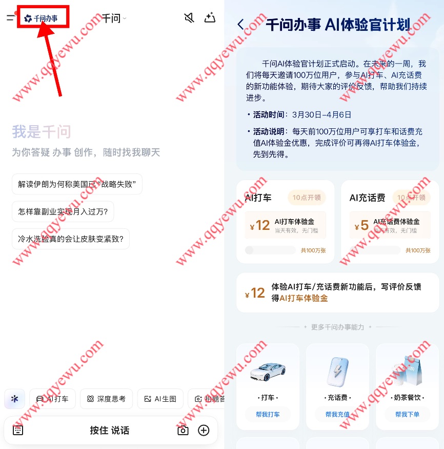 千问每天领100万份12元打车和5元话费券 小伊 03-31 千问每天领100万份12元打车和5元话费券,每天10点补库存 活动时间:2026年3月30日-4月6日 参与方法:打开千问APP首页左上角【千问办事】参与 上一篇zfb搜[ 学生模式 ] ,每日⏰21点前组队 22点开下一篇拼多多连续签到14天必得9.9元微信零钱