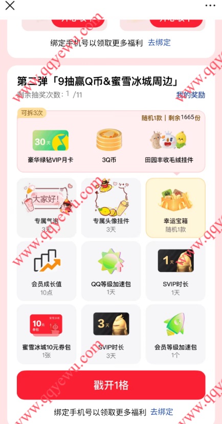 QQ携蜜雪冰城抽QB+豪华绿钻+SVIP会员等 小伊 04-02 QQ携手蜜雪冰城抽QB+豪华绿钻+SVIP会员等,完成简单的任务领取多次机会 活动时间:2026年4月1日-4月3日 活动地址:https://act.qzone.qq.com/v2/vip/tx/p/54497_0a901ada手机扫码参与: 上一篇华为会员日免费领咖啡+贴膜+打印照片等下一篇肯德基疯狂星期四还不错哈 ,半价就能吃 不会的看视频哈