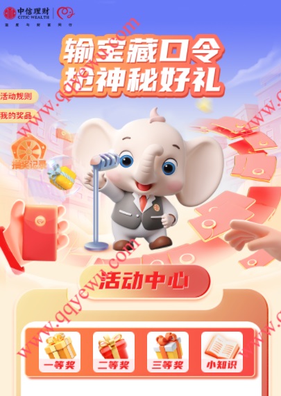 中信银行输宝藏口令抽1元支付宝红包 小伊 04-13 中信银行输宝藏口令抽1元支付宝红包,填写口令【信福+】提交抽奖,需手动兑换领取秒到 活动地址:https://www.citic-wealth.com/wechat/product/#/liveInterAction手机扫码参与: 上一篇广东建行工行信用卡,20元毛,工行早上领了,建行现在放了,工下一篇支付宝维他柠檬茶抽免单红包
