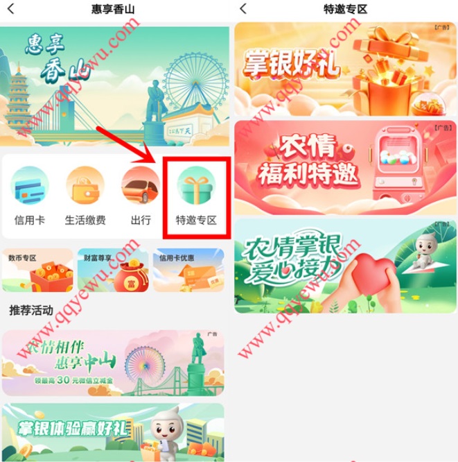 农行3个活动必中10元微信红包 小伊 04-21 农行3个活动必中10元微信红包,打开活动跳转APP参与,点【特邀专区】进去里面3个活动都可以参加,每支付0.05元抽奖1次,支付的钱会原路退回,全国都可以去,如果提示非受邀就参加不了 活动地址:https://go.abchina.com/k/8GX手机扫码参与: 上一篇工.行吉林补了 这个要自己卡下一篇有反馈0.01 抽看看 ,沪上 抽3w张1分喝这个也还有