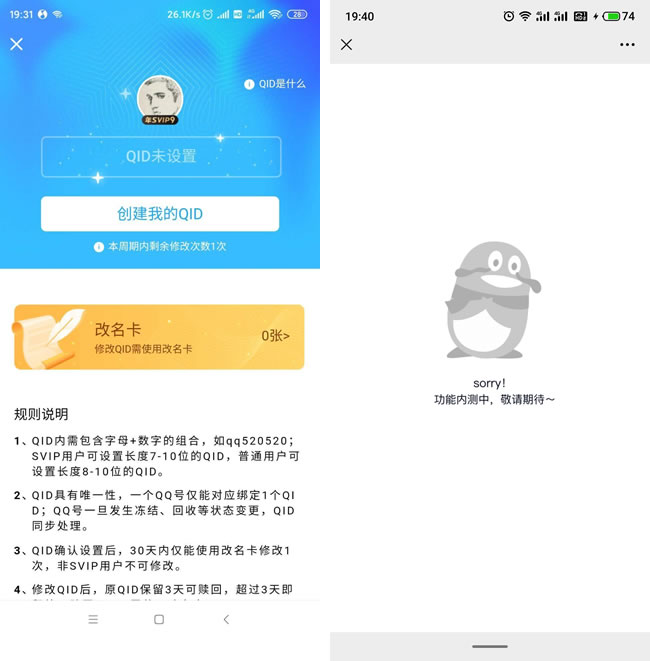3.Q|D确认设置后,30天内仅能使用改名卡修改次,非SVP用户不可修改。
