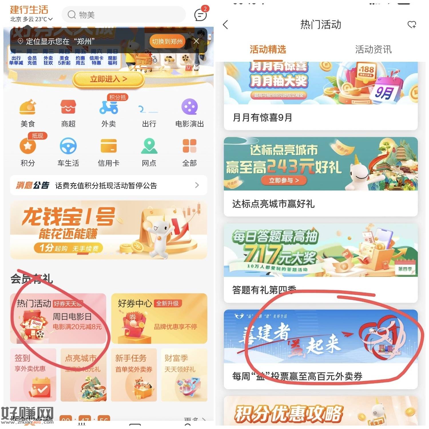 建行生活app,热门活动,善建者“益”起来,投票,开盲盒(次 小伊 09-18 建行生活app,热门活动,善建者“益”起来,投票,开盲盒(次数刷新了) 上一篇预告:2023年9月19日至2023年10月9日活动对象南下一篇江西任务中心,缴费满10抽,好像有保底二。看昨晚有人发帖子,