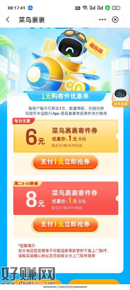 周二,中行APP生活,有1元菜鸟,1元麦当劳,顺丰 小伊 09-19 周二,中行APP生活,有1元菜鸟,1元麦当劳,顺丰也有按需 上一篇必中0.88或1.88猫超卡下一篇领 支付宝 破0小红包 4毛消费红包