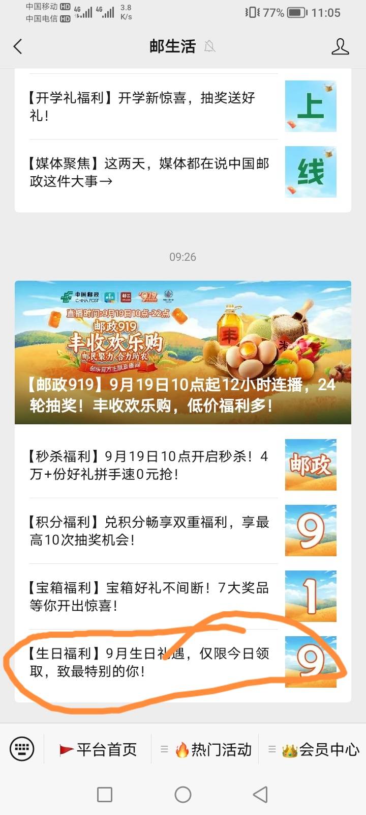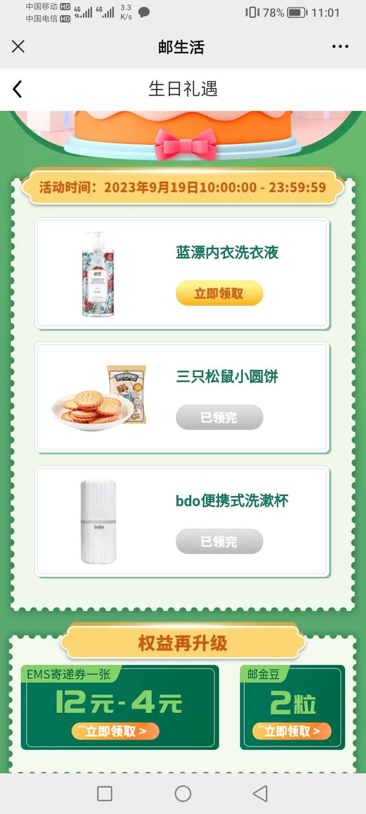 首发,邮生活公众号九月生日的免费领洗衣液,其他两个没有了! 小伊 09-19 首发,邮生活公众号九月生日的免费领洗衣液,其他两个没有了! 上一篇对8必中好像,一号两包,全对是1元下一篇遥遥领先今天有1800台,18:08