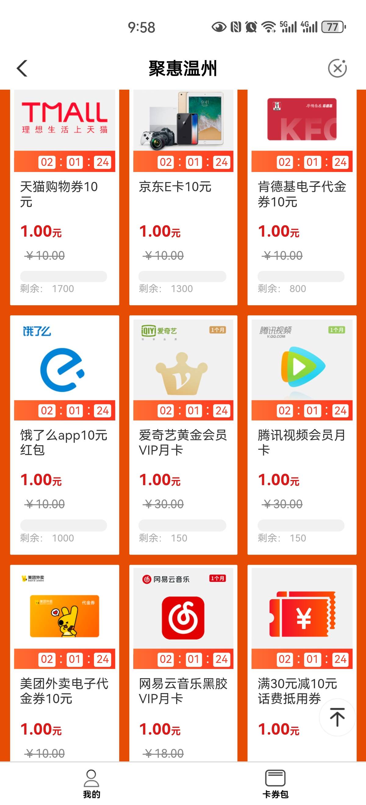 12点农行浙江温州192000秒杀活动 小伊 10-05 本帖最后由 卡农超管 于 2023-10-5 10:04 编辑 12点农行浙江温州192000城市专区-聚惠温州-横幅九宫格,1元秒杀,利润美滋滋 上一篇10点整使用邮储卡支付0.1元抢10元美团外卖券下一篇OSSIM开源安全信息管理系统实践