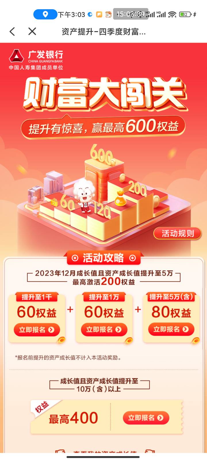 广发银行活动广场财富大闯关活动,存钱给权益券