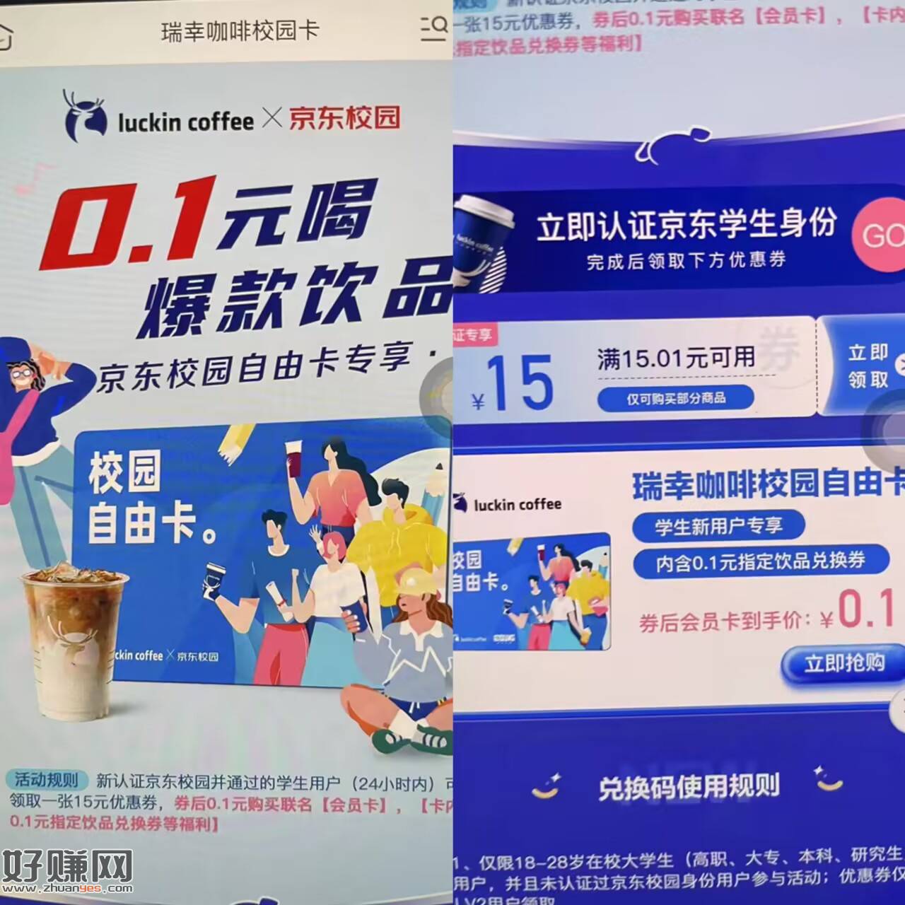 瑞幸app下面会员卡 点开第二个横幅 新认证的京东学生用户 小伊 10-11 瑞幸app下面会员卡 点开第二个横幅 新认证的京东学生用户0.1喝咖啡 上一篇退款打了黑6000第三天才冻结的 记得退款的不要留钱 里面正常10下一篇建行数币商户收款码申请跳审核直接成功