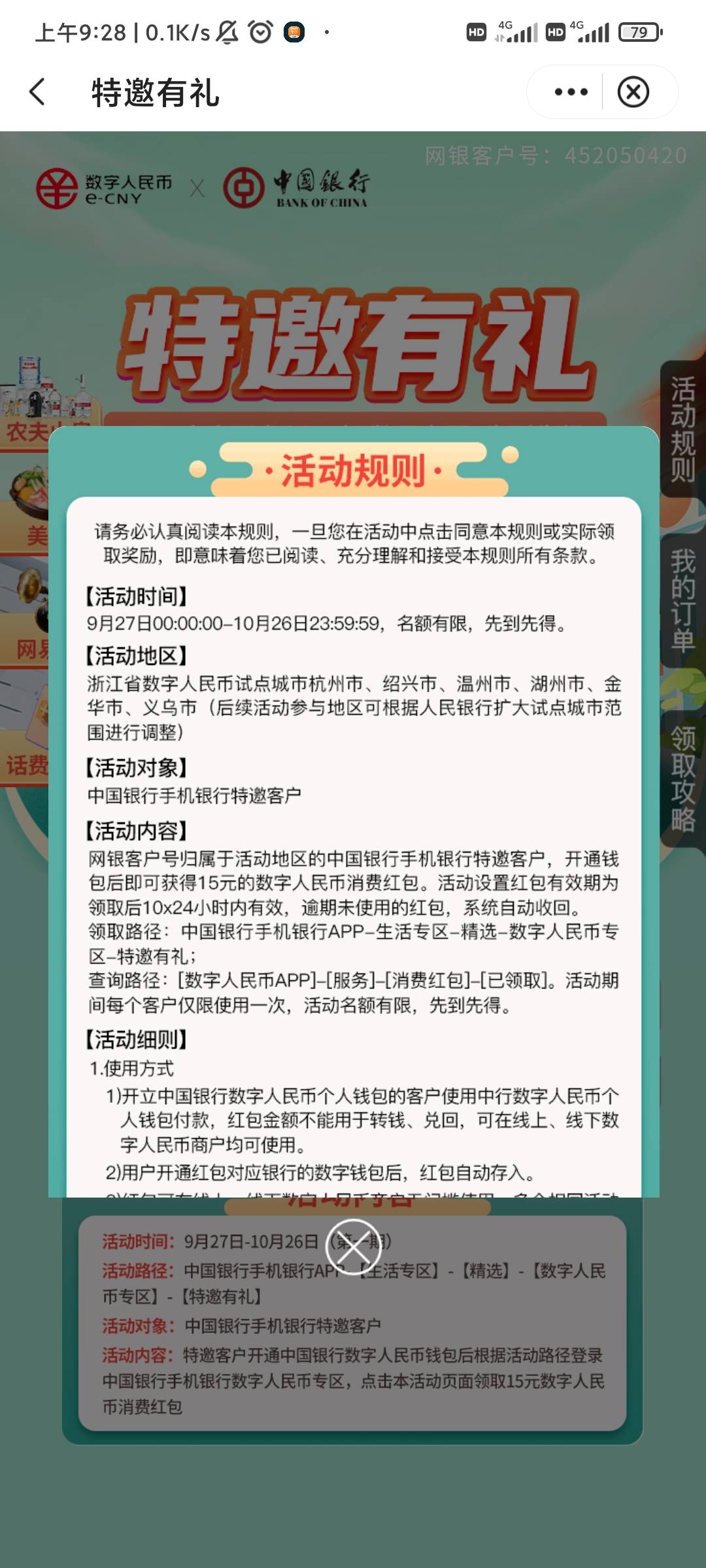 中行浙江生活-精选下拉数字人民币专区-特邀有礼活动 小伊 10-20 中行浙江,生活-精选下拉数字人民币专区,特邀有礼需要定位好像,都去试试看,我第一次飞浙江,数币无门槛,可配合每个月30次那个搭配使用 上一篇江西工行权益简单抽3-30元微信立减金 亲测中5元秒到账下一篇挂合肥146,61,132 ip