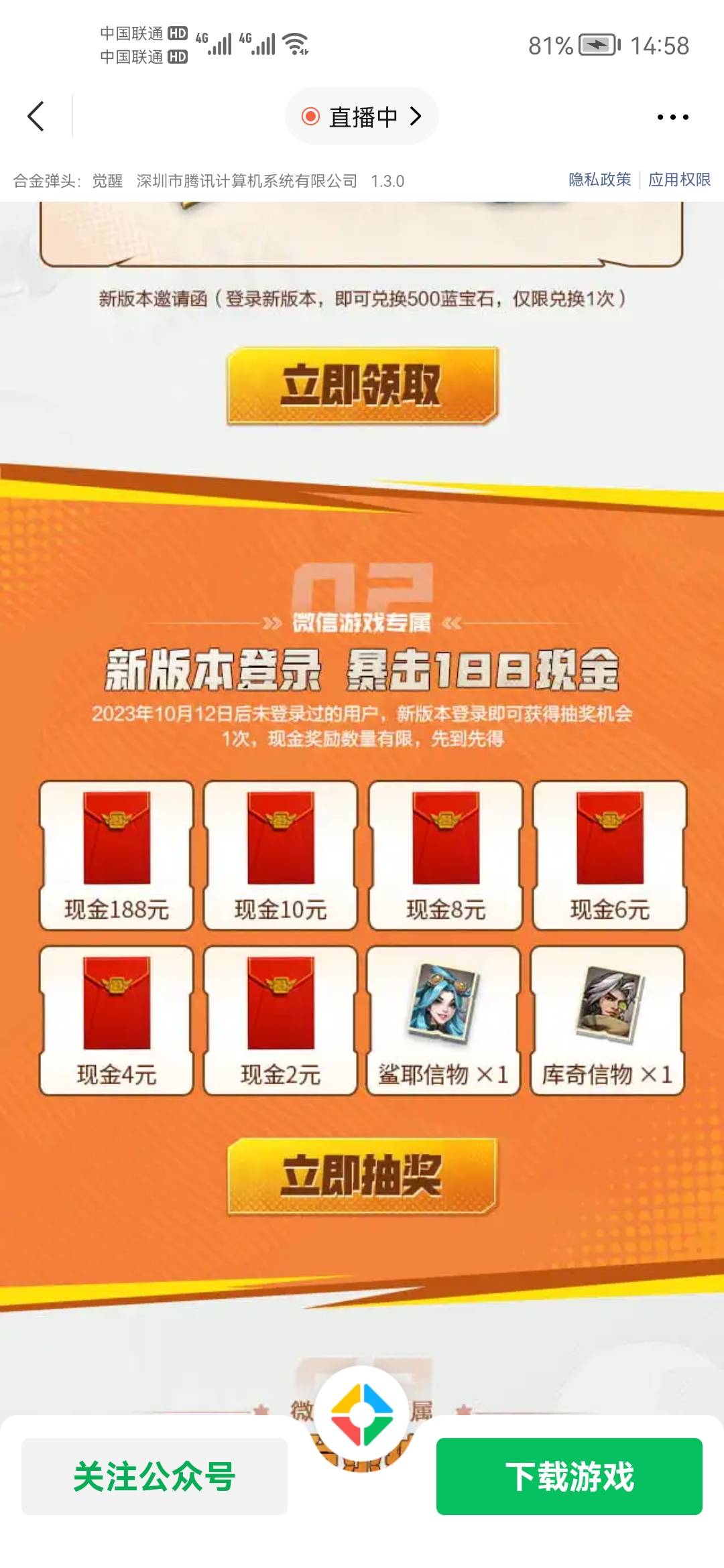 合金弹头19号链接,10月12号后未登录过用户登录抽奖 小伊 10-20 https://game.weixin.qq.com/cgi-b ... #wechat_redirect,别吞。无头 上一篇移动点图抽流量 话费下一篇淘宝天降福利,1元起,每个分类都能领一次,每天都有