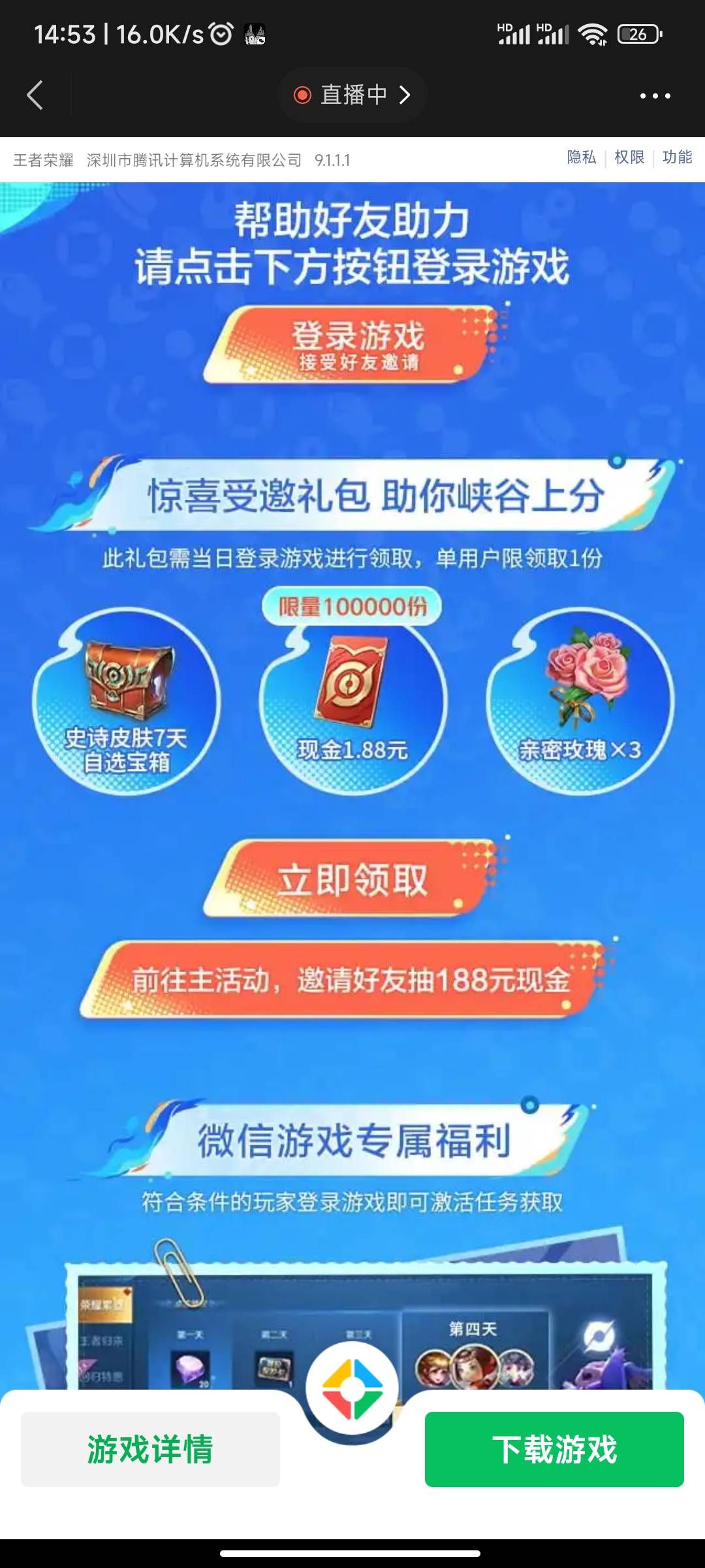 腾讯游戏王者荣耀,惊喜受邀礼包登录游戏领取现金 小伊 11-06 王者荣耀登录1.88,多号多领 没头https://game.weixin.qq.com/cgi-b ... iSw#wechat_redirect 上一篇汤臣倍健公众号回复周一见,疯狂营养岛玩游戏抽奖下一篇[ 攻略贴 ]tb拍拍乐快速集齐两组卡小技巧