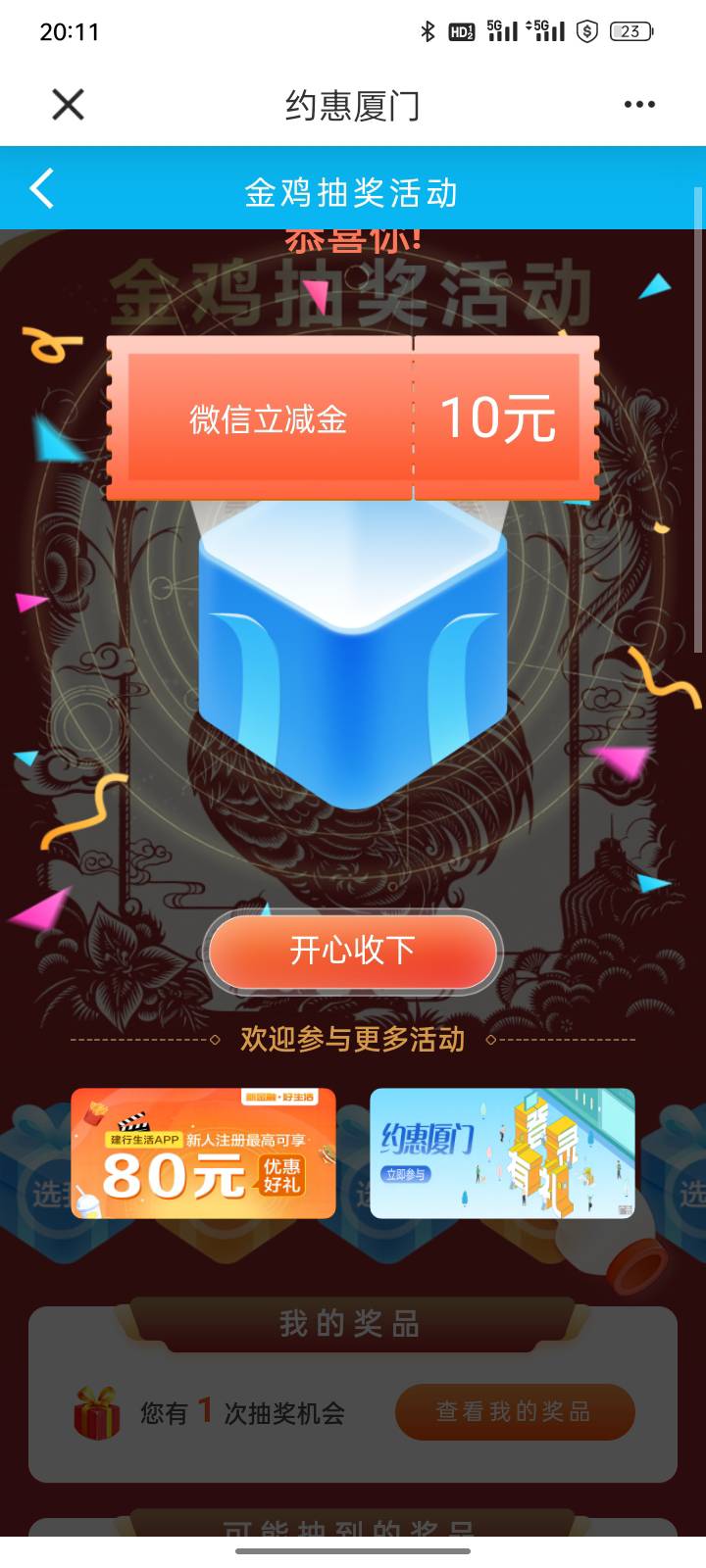 建行厦门-约惠厦门-金鸡抽奖活动