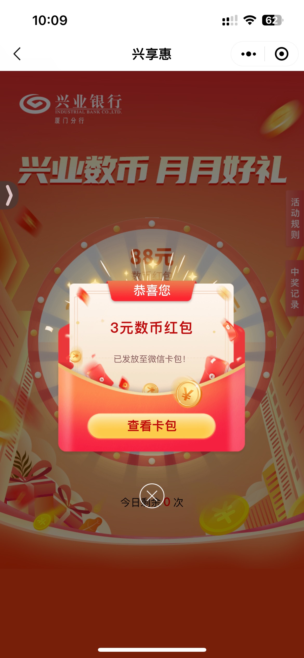 兴业 福州 厦门 8号抽数币 好运的去吧 小程序兴享惠