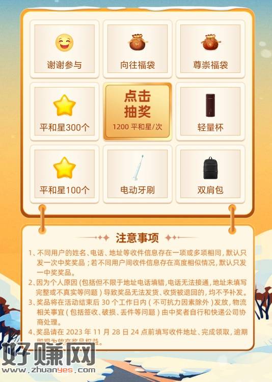 做够4天任务攒够1200平和星每个小时整点抽实物(福袋是烟) 小伊 11-09 做够4天任务攒够1200平和星每个小时整点抽实物(福袋是烟)https://phwd.liqunchina.com/zy-a ... vityId=38&isShare=1 上一篇邮储银行app,权益专区!每个月周四抢购邮储早餐一份,月限制一次!下一篇中行云游长白山抽立减金