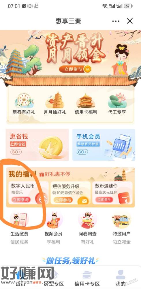 建行app-生活-惠享三秦,数字人民币抽奖乐,限制陕西