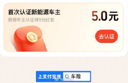 支付宝搜车险双11狂欢价 新能源认证得5亓