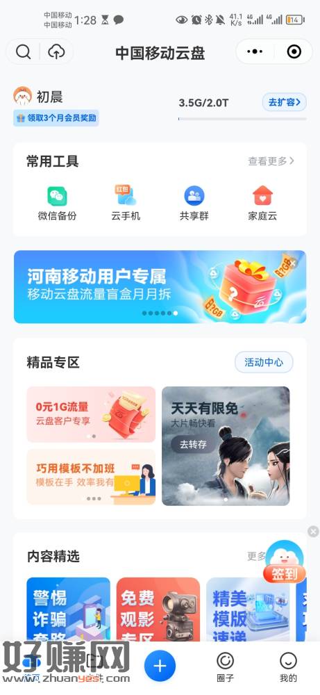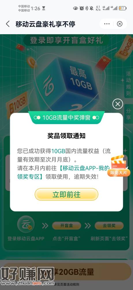 中国移动云盘app,中国移动10g流量 小伊 11-09 中国移动云盘app,中国移动10g流量后两张图中国移动云盘微信小程序,抽流量,看运气多少都有一共保底大概12gPs(小程序是河南专属) 上一篇自测 联通app 搜路由器 点商品进去 下方有冲1下一篇京东千禾1.52KG生抽好价 返卡不到4元/瓶