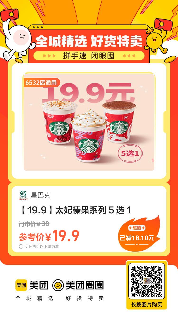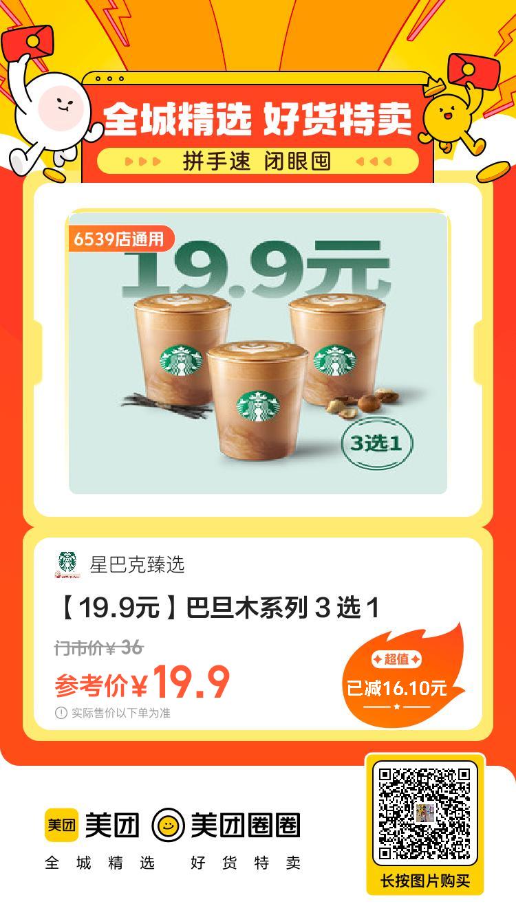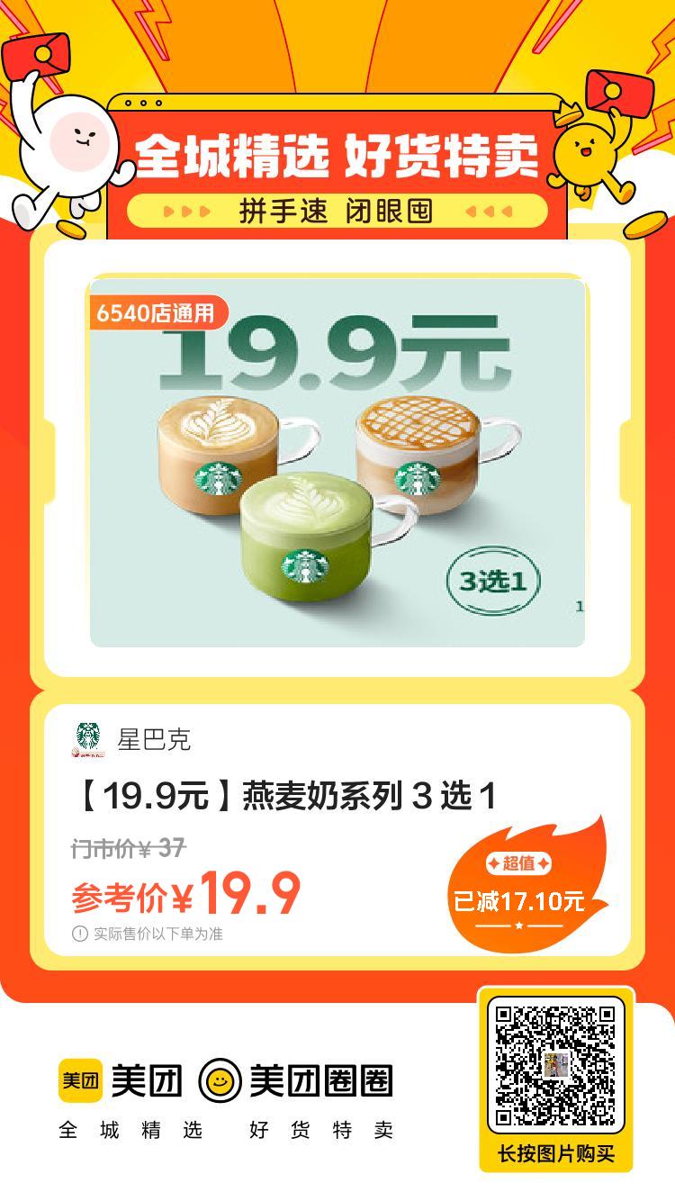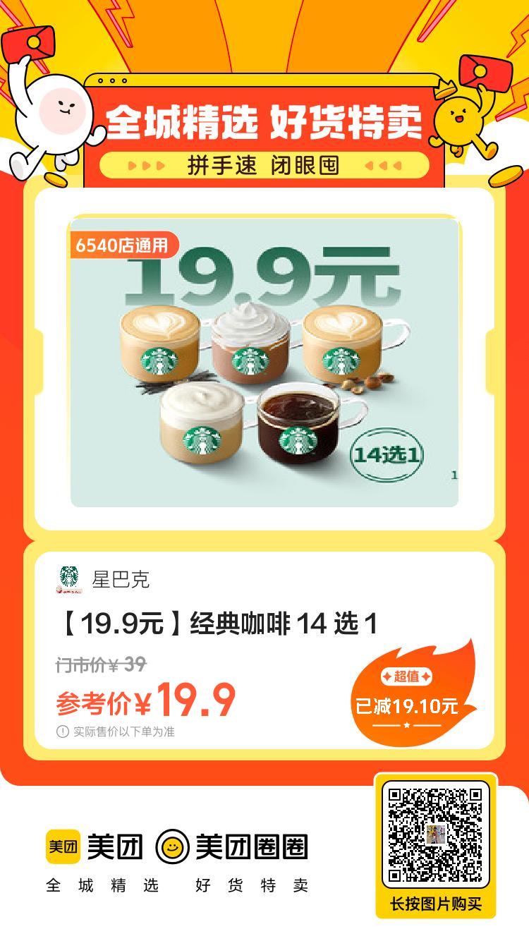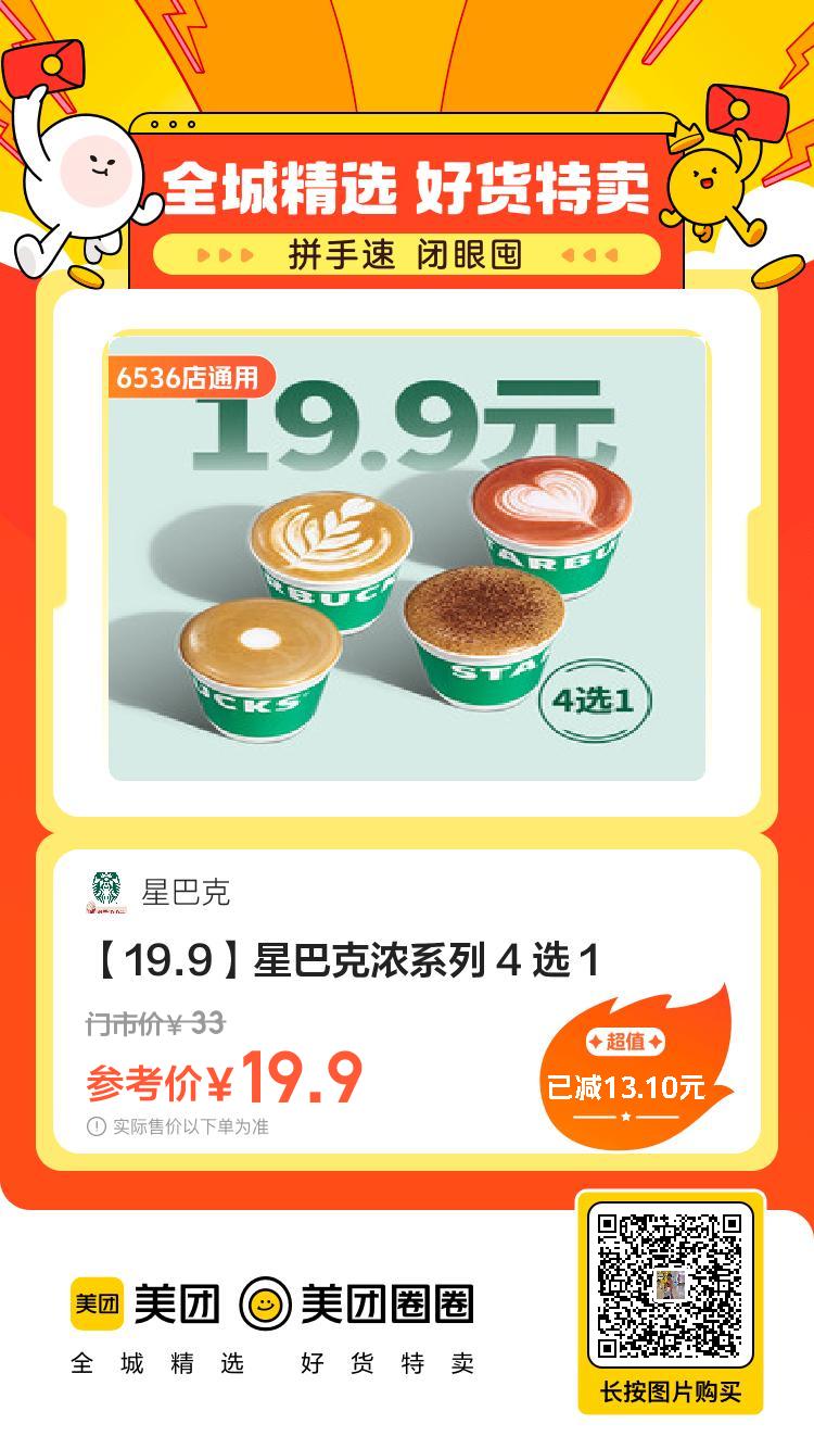 美团到店,19.9,星巴克|[ 19.9 ]星巴克浓系列 小伊 11-10 美团到店19.9,星巴克|【19.9】星巴克浓系列19.9,星巴克|【19.9元】燕麦奶系列19.9,星巴克|【19.9元】经典咖啡 19.9,星巴克|【19.9元】巴旦木系列19.9,星巴克|【19.9】太妃榛果系列19.9,星巴克|【19.9元】冰摇茶系列 上一篇QQ和平新一期任务,不确认啥时候出的,看着像昨天或者今天的下一篇手淘搜[ 淘宝大赢家 ]答案[ B.D ]次日8点后