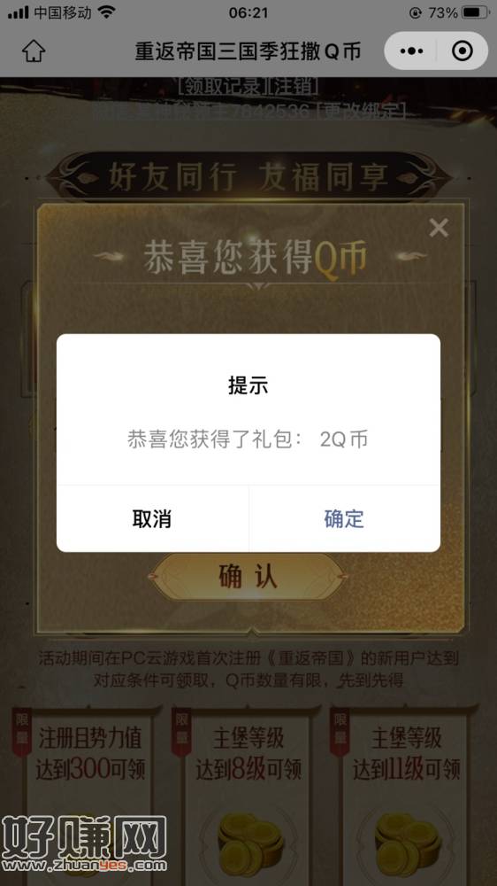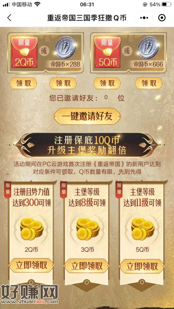帝国要没玩过腾讯先锋的换区注册直接云玩,拉3个人助力7q币新 小伊 11-10 帝国要没玩过腾讯先锋的换区注册直接云玩,拉3个人助力7q币新老都可以,#小程序://腾讯先锋/LDcUEjO7CvVHVKB等级包10q币,我所有号毕业,领q币时候不可以多号同一Q只可以一号一Q 上一篇[ 电信活动 ]宠粉有礼,抽话费保底1R下一篇[ 中行活动(限渝) ]超级星期五