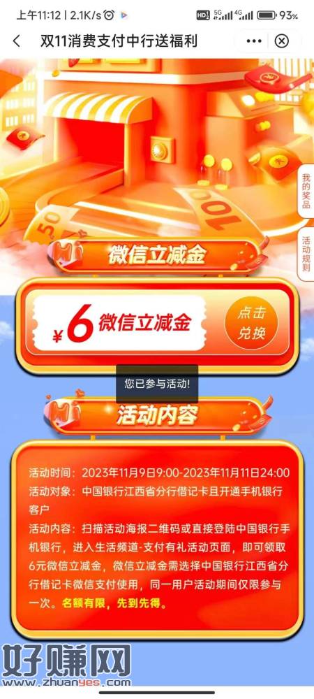 中国银行–江西用户–生活–本地专属–双11支付有礼–领6元微 小伊 11-10 中国银行–江西用户–生活–本地专属–双11支付有礼–领6元微信立减金 上一篇陕西信合银行微信首绑10元下一篇陕西信合app登录首页弹窗,登录有礼抽话费优惠券