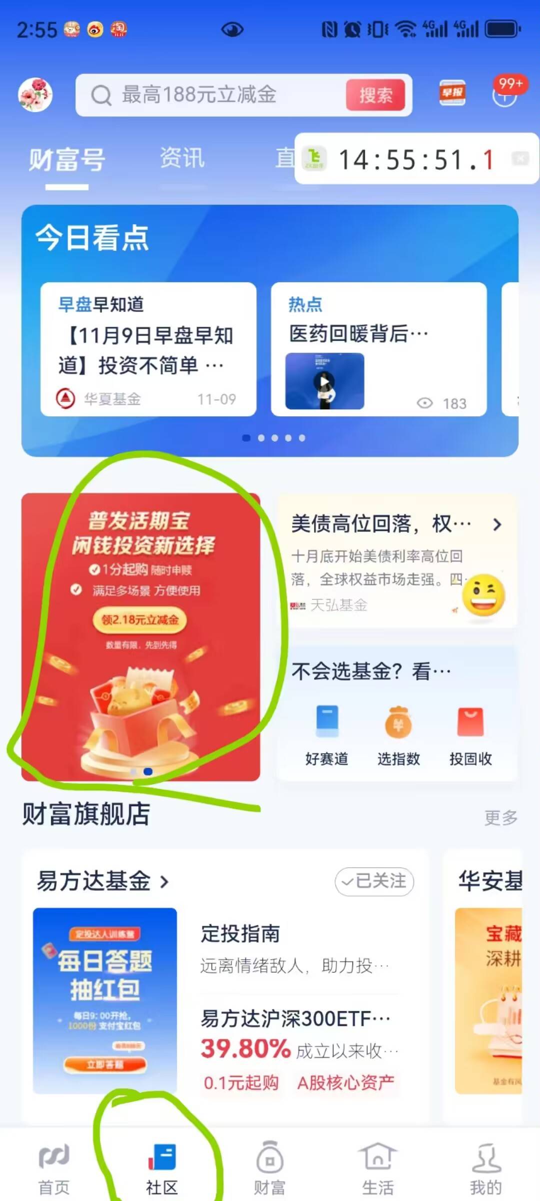 浦发银行-社区,浦发活期宝签约 小伊 11-10 浦发银行APP如图位置领2.18立减金(没入口把软件升级为最新版本) 上一篇必得2元立减金 仅限山东电信 其他省忽略下一篇支付宝0.1开60天淘票票会员