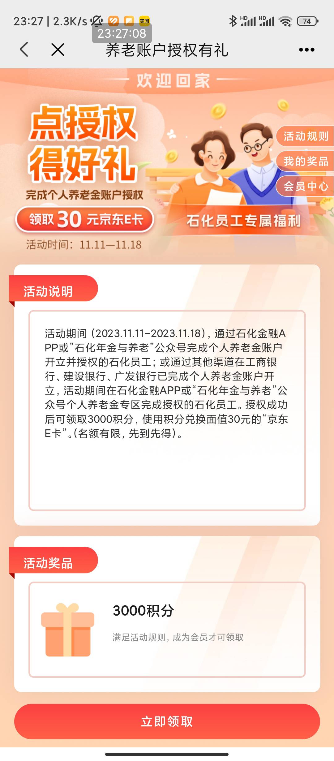 石化金融app养老账户授权有礼,完成养老金账户授权领奖 小伊 11-11 首发石化金融,符合要求的去试试吧,30e卡 上一篇交通银行成都-数币活动专区-钱包开立升级消费更新下一篇工行咸鱼转账200-11.11