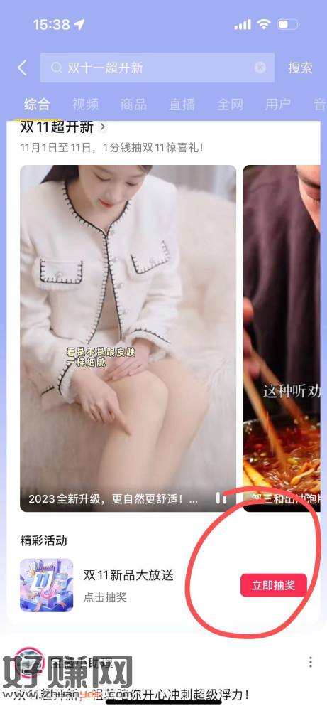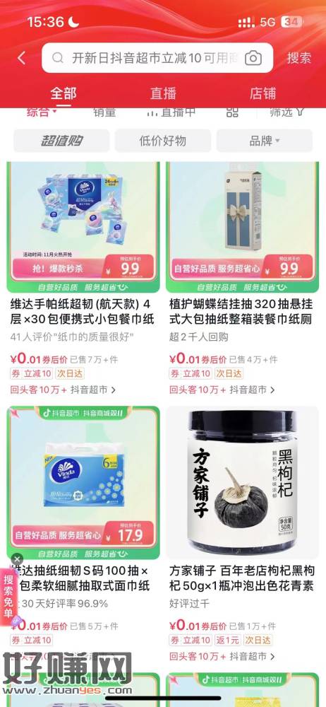 抖音搜索 双十一超开新 然后领个十块钱无门槛