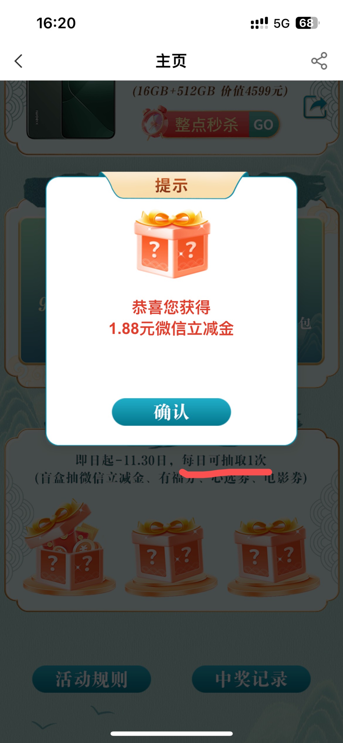 农行福建城市专区惠有福,农情盛典秒杀抢购活动 小伊 11-11 农行城市专区,福州惠有福进去两个活动。有今天晚上抢小米14的,还有每天抽盲盒的,我抽了1.88立减金,还有秒杀的,福建活动挺多的啊最近。 上一篇过号,安慰不要。下一篇抖音超市抽10元券0.01撸实物