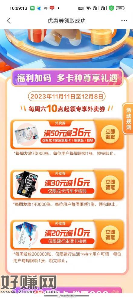 建行生活app中间滚动条周六好礼一卡尽享,建行生活 小伊 11-12 建行生活app中间滚动条周六好礼一卡尽享,建行生活卡可领外卖20-10,汽车卡30-16 上一篇第一次发,想想还有点小激动呢,有水,冲鸭下一篇刚刚工行最高50立减金的那个,中了没到账的或者没库存的,去个