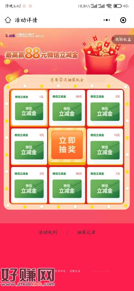 重庆光大,不知道其他地方能不能抽 小伊 11-12 重庆光大,不知道其他地方能不能抽https://mp.weixin.qq.com/s/Qrt3RaoNgYLxtjJDTzquDw下滑有入口 上一篇预约过光大养老金的,去我的权益看看,有个抽奖有点-让人意外居然是88开下一篇沃钱包app-电子券,满10减3元线下消费券