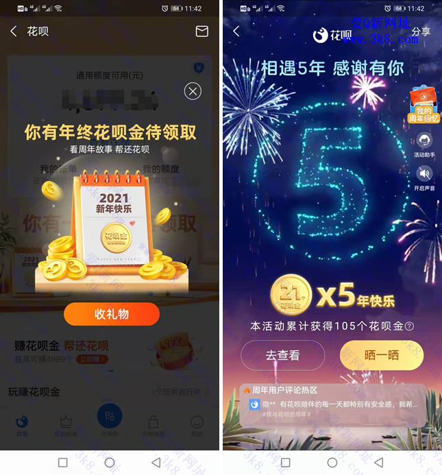 支付宝花呗5周年快乐,进入页面查看回忆相册送花呗金