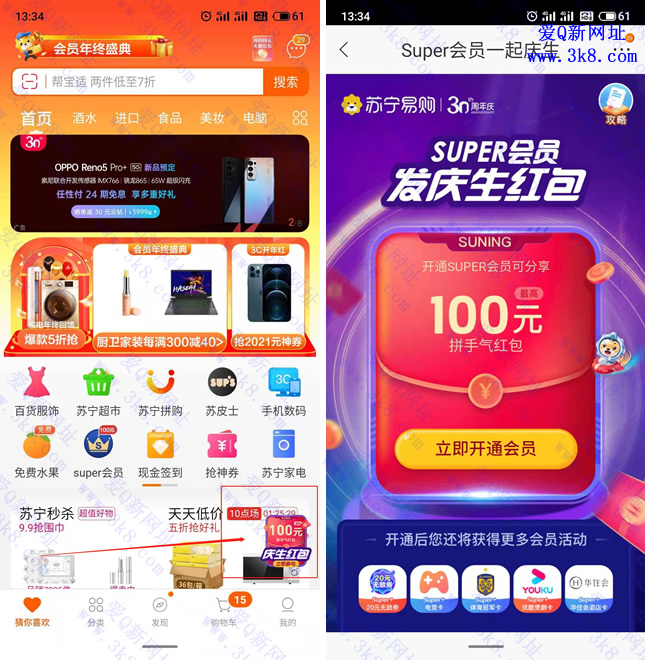 苏宁会员庆生红包最高100元 0.01元撸实物包邮