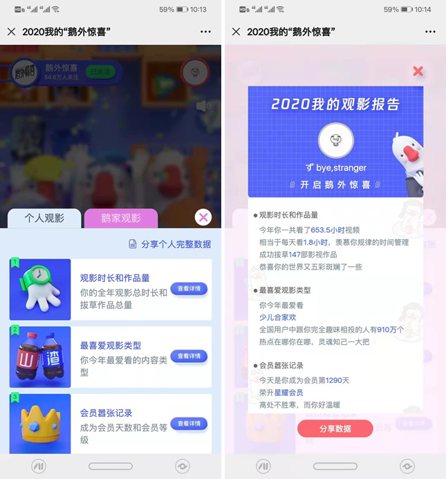 腾讯视频也在今天推出了2020年的鹅家观影报告