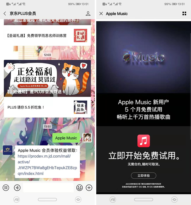 扫码关注京东plus会员公众号 回复“Apple Music” 点击推文链接领取即可
